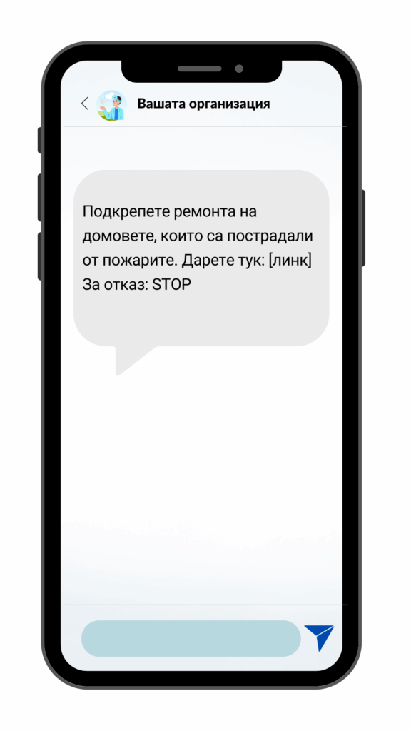 - Текстовите съобщения са по-лични от имейлите, което помага за изграждане на по-близка връзка с дарителите и ги стимулира към действие.