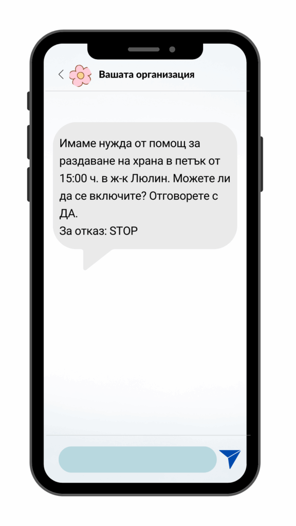 С помощта на SMS Вашата организация получава уникален комуникационен канал за ангажиране на хора, които Ви подкрепят, увеличаване на даренията и подпомагане на Вашата мисия.